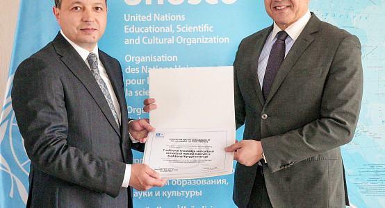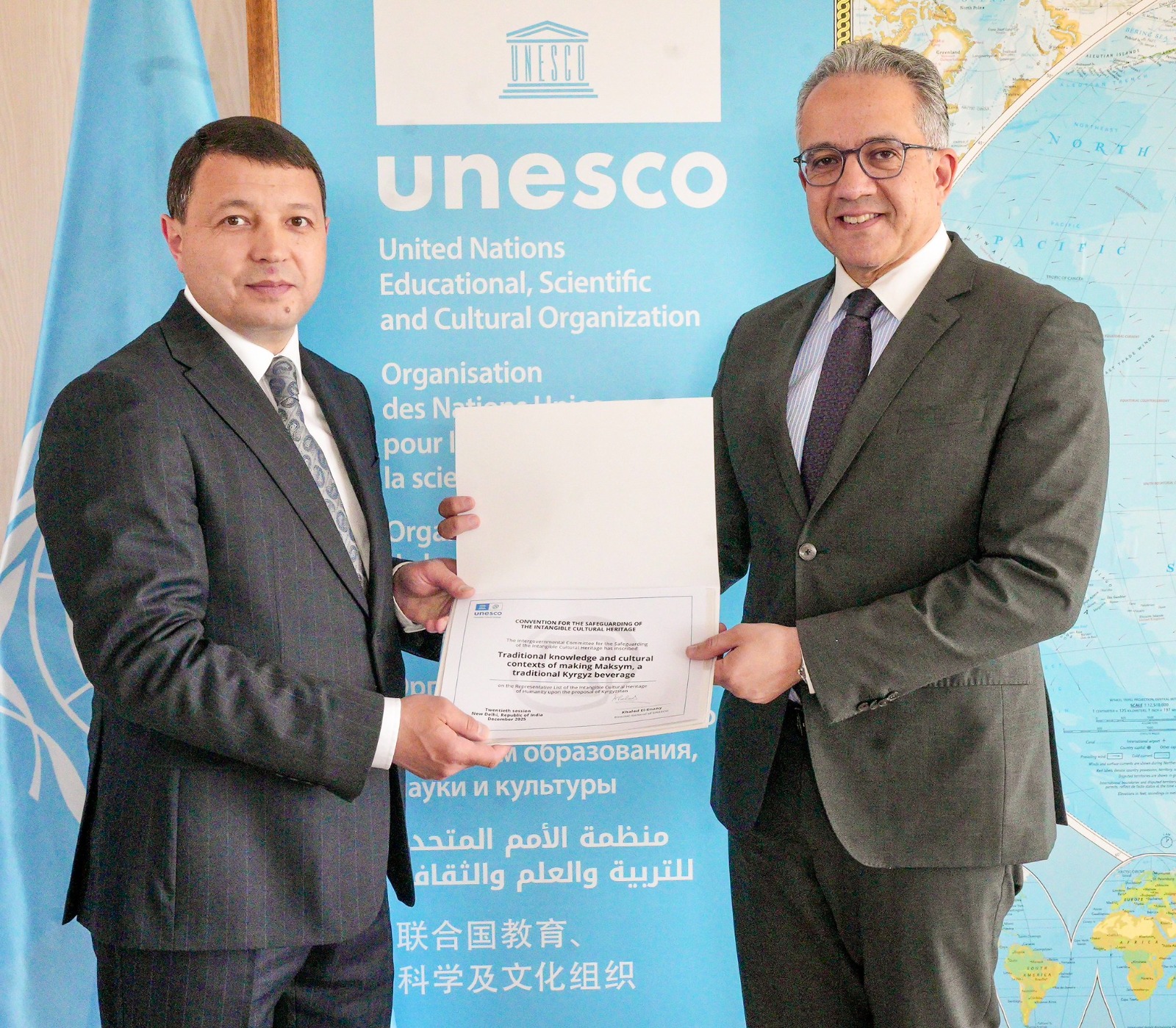 В рамках визита М.К. Мамбеталиев провел официальную встречу с Генеральным директором ЮНЕСКО г-ном Халедом аль-Анани, в ходе которой состоялась официальная церемония вручения сертификата о включении в Репрезентативный список ЮНЕСКО нематериального культурного наследия человечества номинации «Традиционные знания приготовления традиционного кыргызского напитка Максым».