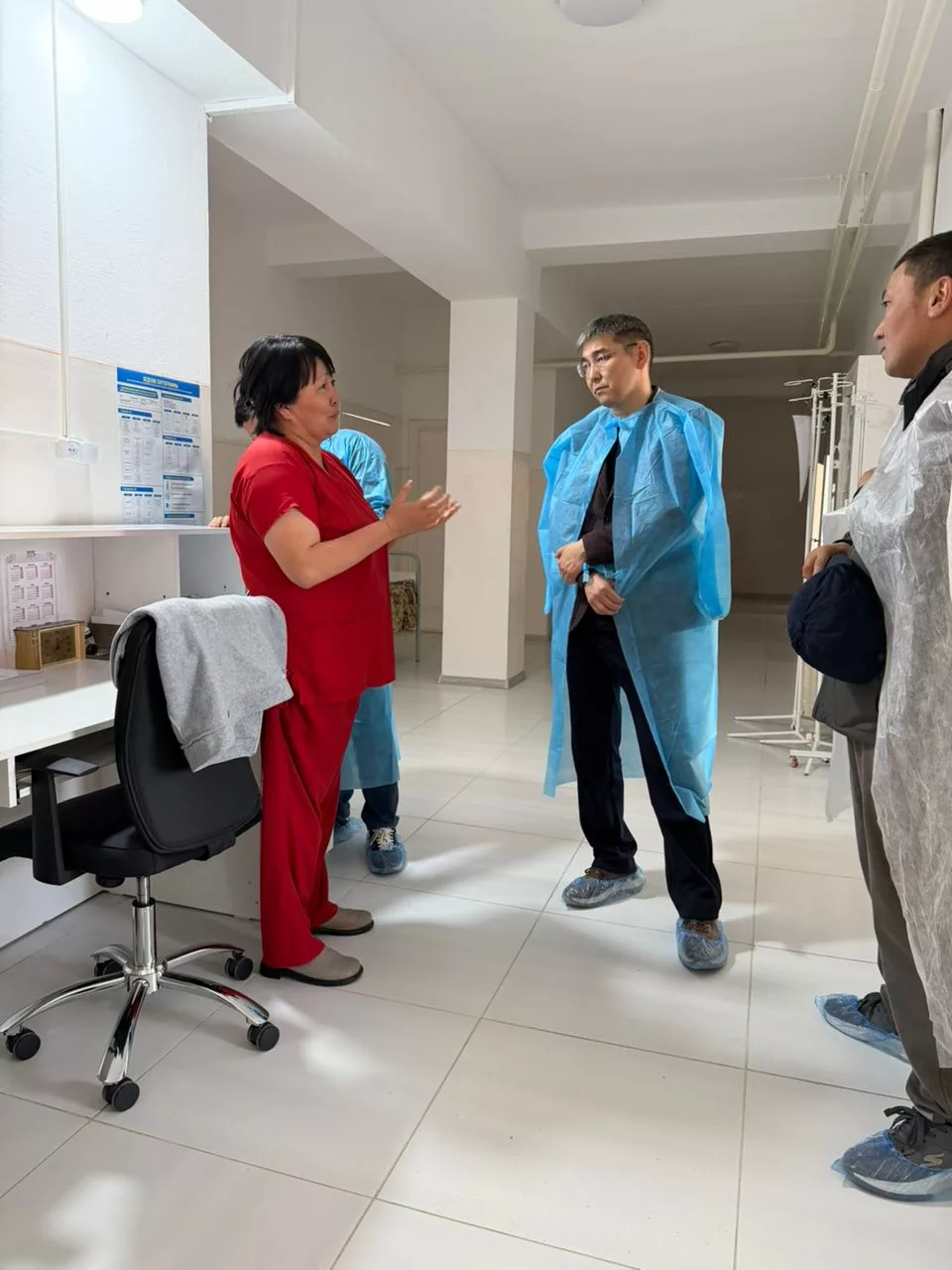 В Нарынской областной объединённой больнице министр осмотрел ход подготовки к запуску новых объектов, включая установку ангиографа и развитие катетеризационной лаборатории, а также ознакомился с работой кардиологического отделения и современным оборудованием.
