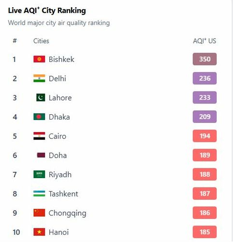 Бишкек. 15 января. КирТАГ – В рейтинге крупнейших городов мира по качеству воздуха World Air Quality на 16.40 Бишкек находится на первом месте.