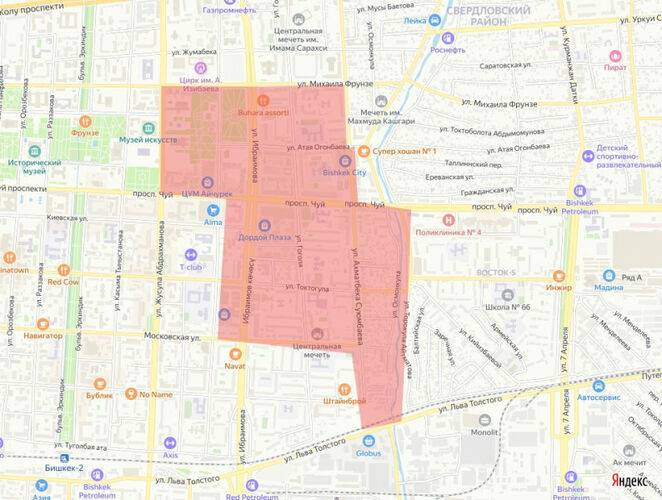 По ее данным, район отключения: улицы Абдрахманова — Фрунзе — Суйумбаева — проспект Чуй — река Аламедин — линия железной дороги — улицы Московская — Шопокова.