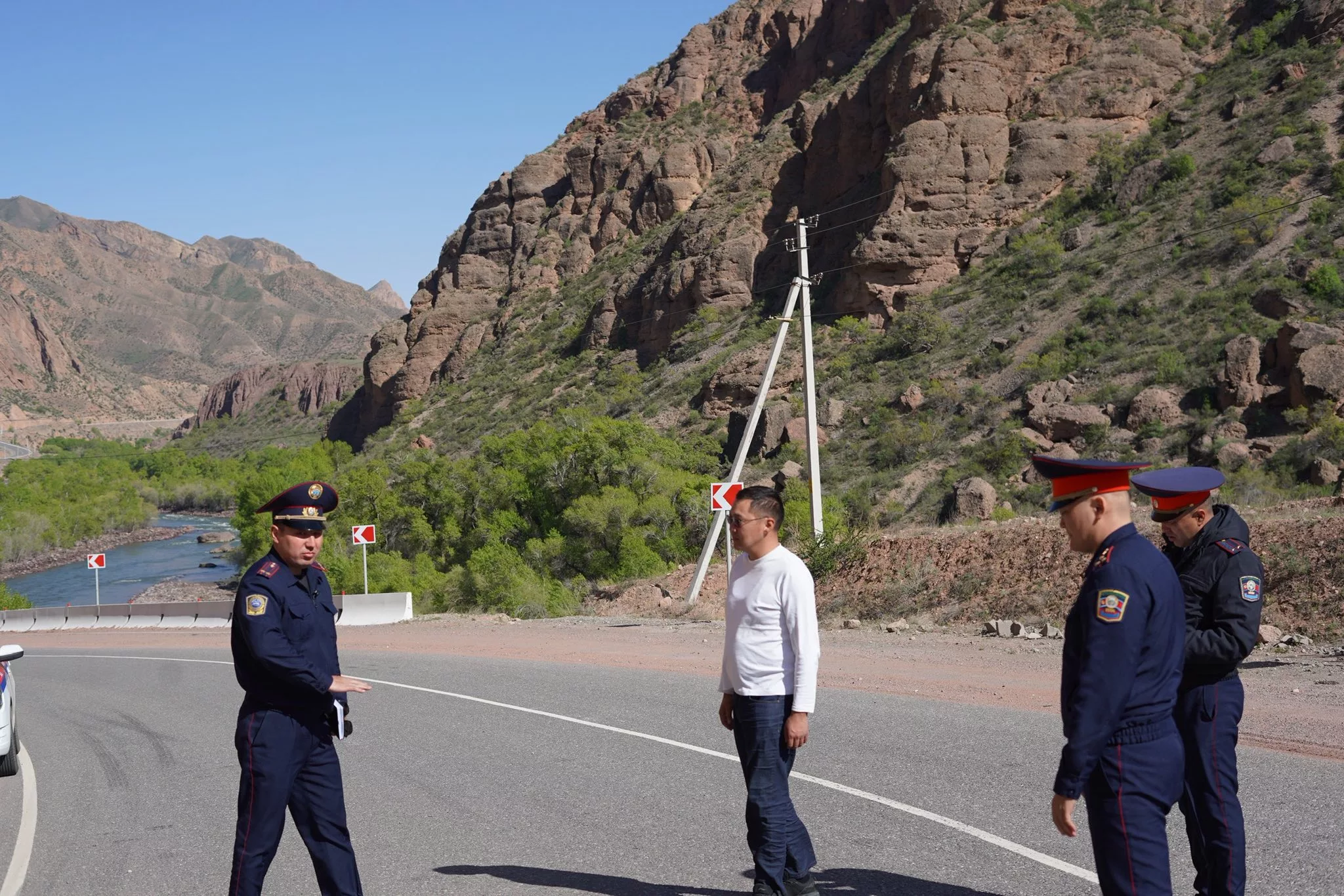 Бишкек, 21 апреля, КирТАГ — Сотрудники Главного управления по обеспечению безопасности дорожного движения МВД Кыргызстана провели обследование состояния альтернативной автомобильной дороги Север–Юг на территории Нарынской области.