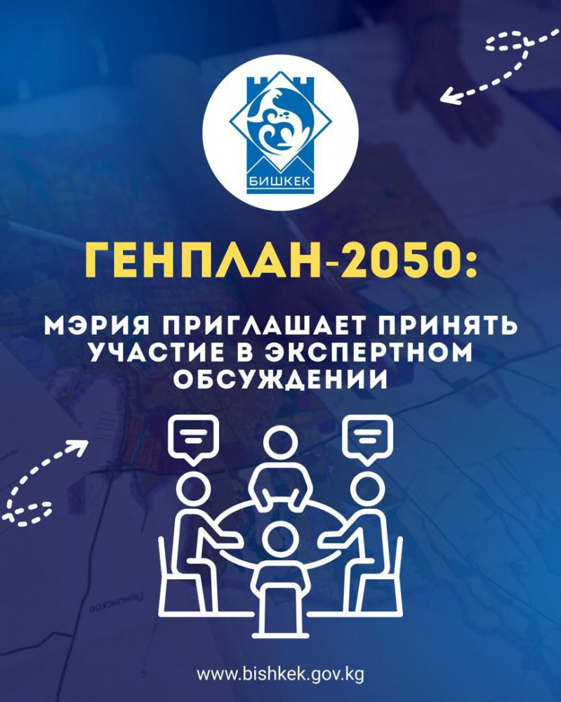 Бишкек. 27 ноября. КирТАГ – Мэрия Бишкека приглашает принять участие экспертов и специалистов в сфере градостроительства, архитектуры, транспорта и экологии в презентации и экспертном обсуждении проекта Генерального плана развития Бишкека до 2050 года.