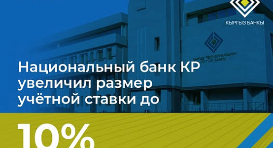Бишкек. 28 октября. КирТАГ – Правление Национального банка Кыргызстана 27 октября 2025 года приняло решение повысить учетную ставку (ключевую ставку) на 75 базисных пунктов до 10 процента. Решение вступает в силу с 28 октября 2025 года.