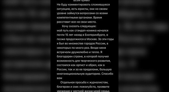 В конце обращения артист попросил журналистов и блогеров не трогать его семью, подчеркнув необходимость уважения к частной жизни жены, детей и близких.