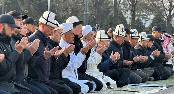 Праздничная молитва прошла с участием тысяч граждан Кыргызстана на Старой площади имени Турдакуна Усубалиева в Бишкеке.