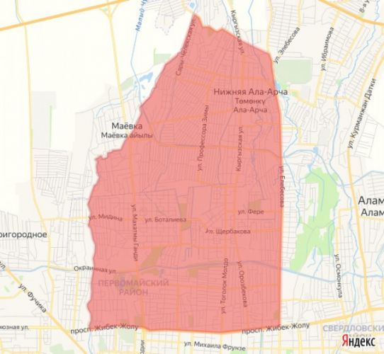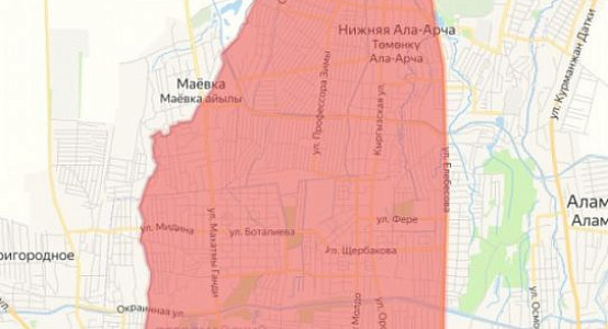 Район отключения: улицы Куренкеева, Абдрахманова, Элебесова, Бельская, река Ала-Арча, проспект Жибек Жолу, бульвар Молодой Гвардии, БЧК, улица Саадаева.