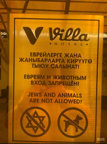 Бишкек, 21 апреля, КирТАГ — В Оше в отеле Villa появилась вывеска с запретом на вход евреям и животным.