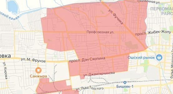 • жилмассивы «Военный городок», «Кызыл-Аскер», «110-й квартал», микрорайон «Достук».