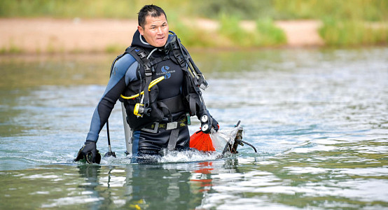 Водолазы МЧС КР провели очистку акватории озера Иссык-Куля от рыболовных сетей